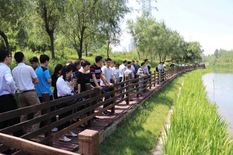 上午9点半,考察团一行首先抵达“合肥滨湖新区塘西河水质治理工程”现场,塘西河目前感官已得到明显改善,鸟鸣花香,野鸭成对,成为滨湖新区重要的滨水开放空间和景观廊道,给参观者留下了深刻的印象。