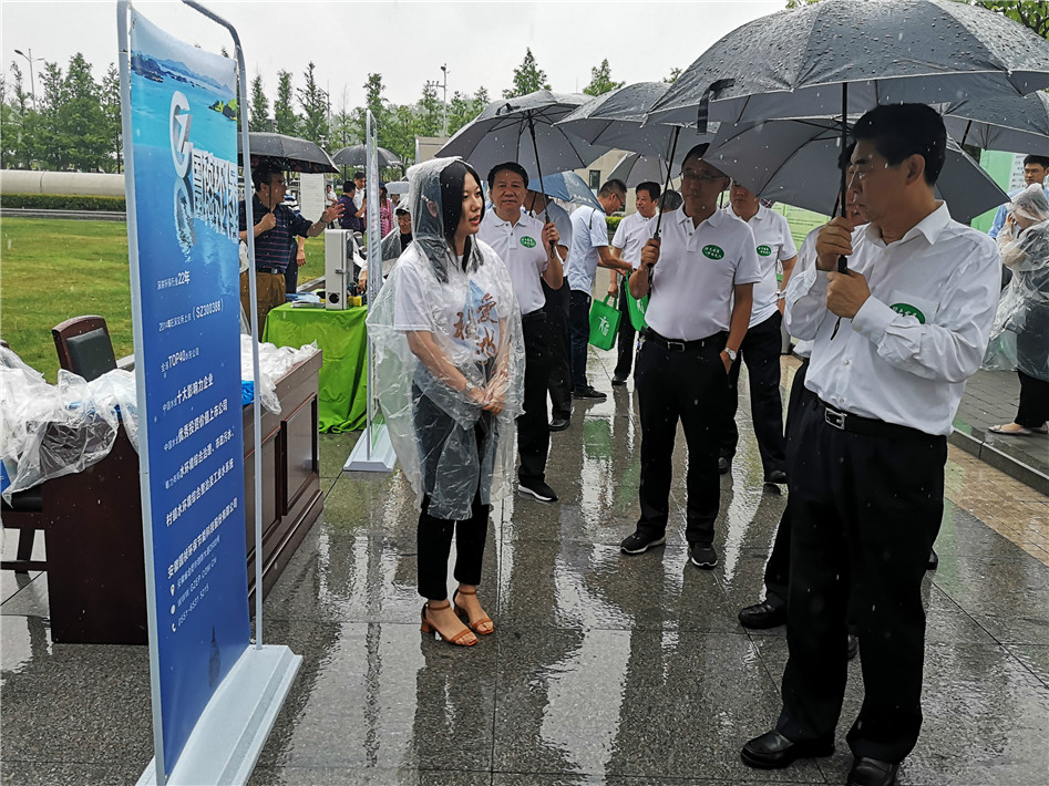 邓向阳带队雨中参观国祯环保展区,对公司业务进行详细了解
