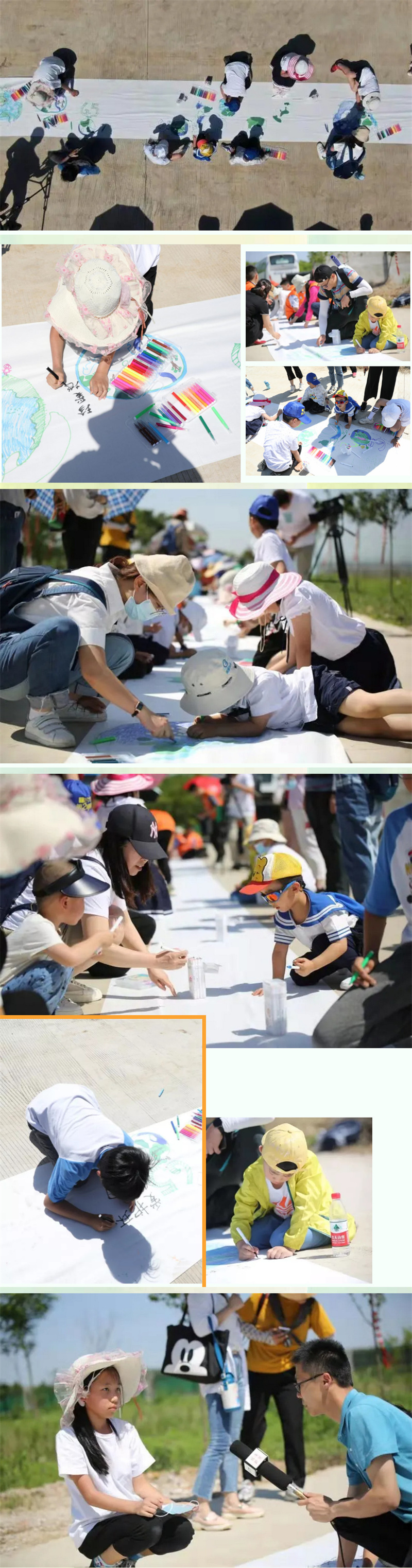 随后,孩子们积极参与到保护地球百米画卷绘画活动中。从“歌手”摇身一变为“画家”,天马星空的想象力、脑洞大开的创造力……孩子们用手中的彩色画笔在百米长卷上尽情挥洒,画出了他们心中、眼中的地球“母亲”,“保护环境”、“珍爱地球”……画卷上写下的句句话语,是孩子们在幼小的心灵里立下的铮铮誓言。